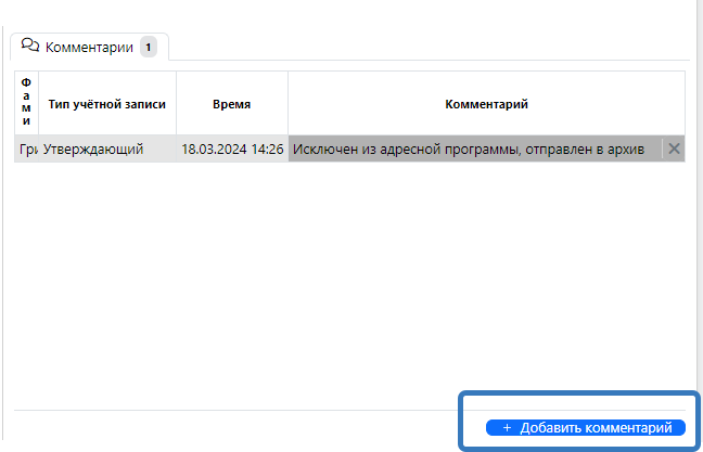 4.5. Предусмотрена возможность добавлять комментарии к мероприятию в разделе «Комментарии», для этого нажмите на кнопку «Добавить комментарий». Пример такого комментария представлено на рисунке 14.
