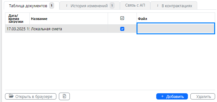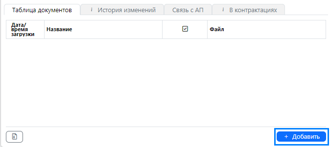 4.6. Подтверждающие документы по одному необходимо добавить в разделе «Таблица документов», используя кнопку «Добавить» (рис. 15).