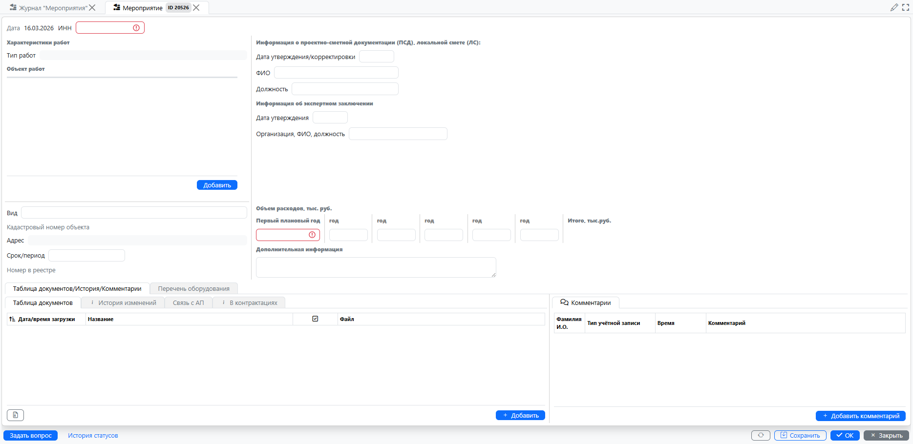 — Заполните поле [highlight:lemon-yellow]Объект работ[/highlight]. Данное поле является обязательным для заполнения и предназначено для указания, где именно будут проводиться работы или для какого объекта приобретается оборудование, в рамках данного мероприятия.