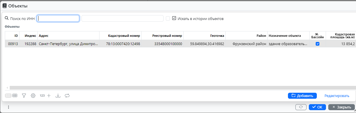 — Кадастровый номер и номер в реестре собственности Санкт-Петербурга заполнятся автоматически при выборе адреса объекта из списка (рис. 9).
