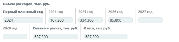— Укажите сумму сметного расчета в тыс. руб. (для типов работ «Оборудование…» – сумму, на которую приобретается оборудование).