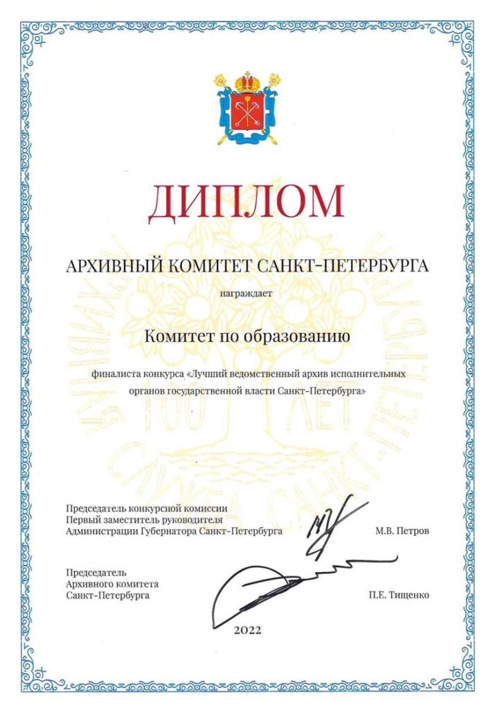 Финал конкурса «Лучший ведомственный архив исполнительных органов государственной власти Санкт-Петербурга» В честь 100-летия архивной службы города в Петербурге впервые прошел конкурс ведомственных архивов. Поздравляем наших коллег с выходом в финал конкурса «Лучший ведомственный архив исполнительных органов государственной власти Санкт-Петербурга»! Желаем не останавливаться на достигнутом результате и стремиться развиваться и познавать все большее. Пусть всегда горит энтузиазм в глазах, […]