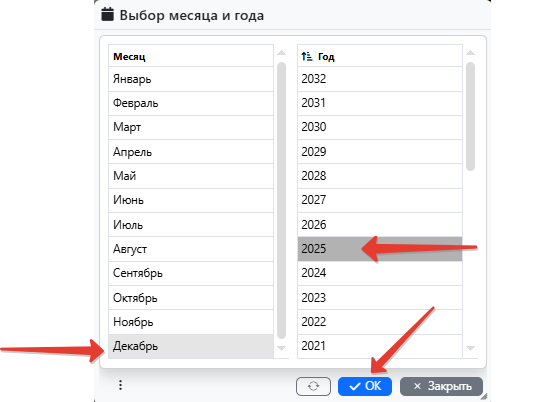 После выбора учреждения открывается окно «Выбор месяца и года». Выберите месяц и год, за который формируется отчет, и нажмите кнопку «ОК».