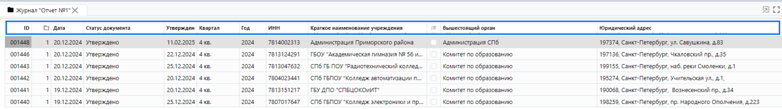 Журнал «Отчет № 1» состоит из следующих полей (рисунок 2):