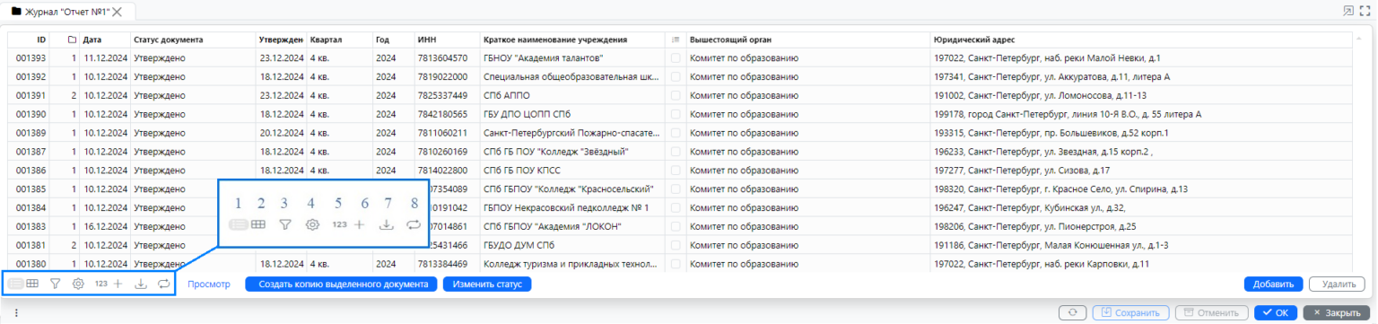 1 Таблица — кнопка переключения в табличный вид;