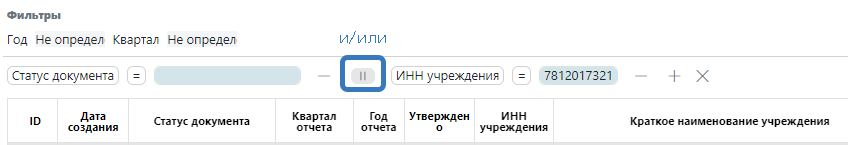 Примечание: В случае установки нескольких фильтров можно менять условие фильтрации кнопкой И/ИЛИ.