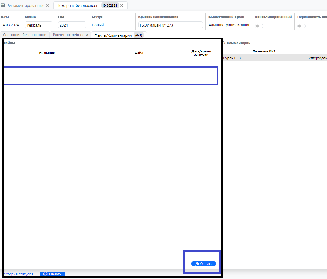 В форме отчета имеется функционал по добавлению файлов различных типов к формируемому отчету.\